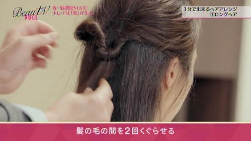 いかにも「私、がんばってます!」という感じに思われないための、脱・意識高い系ヘアアレンジテクニック。まずはロングヘアから。用意するのは、ヘアアイロンとナイロンゴム1つだけ。最近巷をにぎわせている“くるりんぱアレンジ”を、たった3分で完成させます!