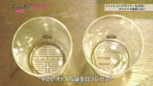 そんな数ある商品の中でも人気の“うすはり家紋グラス”をオリジナル家紋入りで、5月14日が誕生日のエイミさんにサプライズプレゼントとして作っていただきました。