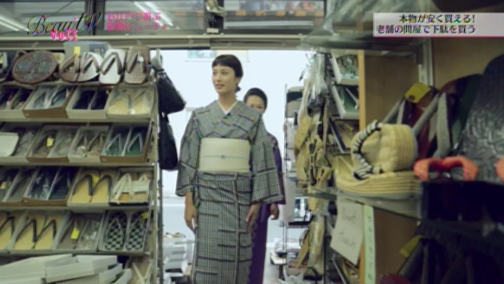 如月さんの見立てでコーディネートもばっちり決まったエイミさん。同じお店で履物レンタルもできますが、また着物が着たくなるようにと、如月さんいきつけの履物屋さんへ…。