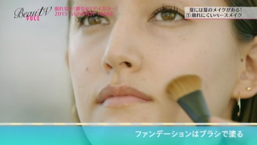 ファンデーションをブラシで塗るのも、メイクが崩れない大事なポイント。薄く塗れて、ツヤも出てきます。