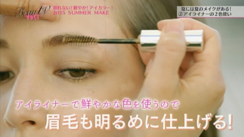 夏らしく鮮やかに仕上げるアイメイクが映えるよう、まゆげの色はアイブロウマスカラで少し明るめに。