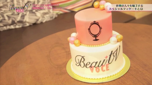 特別なイベントやパーティの時、そのテーマに沿ったスペシャルなケーキをオーダーメイドで一からデザインするという、世界にひとつしかないケーキ。なんと今回、番組をイメージしてサプライズで作ってきていただきました! すべて食べられるというのがウソみたいな、エレガントでキュートなデザインのケーキ。エイミさんも「かわいい!!」と大感動です。
