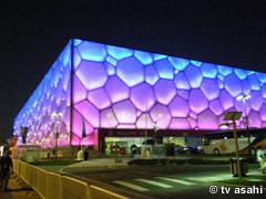 皆さんオリンピック前の「雰囲気」を楽しんでいるんですね。 昨夜、車で移動していたら、ライトアップされた会場が目に入り、息を呑みました。 「鳥の巣」(国家スタジアム)が赤く、その手前にある「水立方」(国家水泳センター)が青く光っていて、私も、いつまでも眺めていたい気分になりました。 ここで、喜び、涙、興奮、様々なドラマが誕生していくんですね! 大学時代に中国語を勉強していた松尾にとっては、この取材期間中、いかに皆さんとコミュニケーションを取れるか、というのが1つの挑戦です。 これまでのところは・・・片言ながら、どうにか・・・。 それにしても、皆さん、フレンドリーに話しかけくれます。 「どこから来たの?」 「日本からです。」 「おー日本か!日本語でニーハオはなんと言うんだ?」 「こんにちは、ですよ。」 「コンニチハ?コンニチハ!ようこそ、北京へ。楽しんでいってね!」 という具合に、皆さんとっても温かくて歓迎ムードです。 気になる空気も、昨日は真っ白でしたが、今日は青空が広がって晴れ。 実は東京とそれほど変わらない・・・? 食事も・・・現地のものを食べていますが、今のところ、おなかを壊していません! 滞在あと2日。 あ、ディレクターに呼ばれました。これから北京の市内に取材に出てきます。 またご報告します!