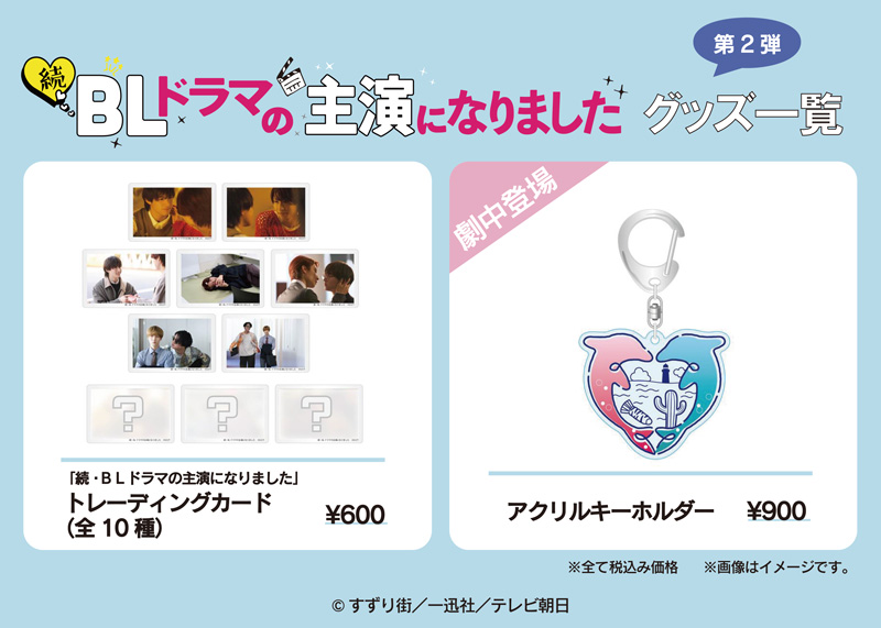6月11日(水)~テレアサショップ各店舗で好評販売中の第1弾グッズに加え、最終話配信を記念して第2弾グッズの発売が決定!7月26日(土)10時より、テレアサショップONLINEおよびテレアサショップ各店舗(六本木店・東京駅店)で販売開始します。最終話の劇中に登場する、“あの”アイテムがグッズに・・・!ぜひお揃いで手に入れてください。さらに『続・BLドラマの主演になりました』の様々なシーン写真が楽しめる【トレーディングカード】も登場! 是非チェックしてみてください。