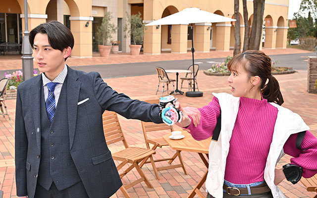 大也(井内悠陽)たちの次の仕事は、「極秘で日本にやってきたとある国の大統領に極秘資料を極秘で届ける」こと! ヒミツだらけの爆上げな仕事ということで、新しくなかまになった未来(鈴木美羽)は大はしゃぎだ。そんな彼女に、射士郎(葉山侑樹)は「認めてないぞ、俺は」と冷たい。しかし、大也から「今まで俺がホレ込んだもので、失敗があったか?」と言われると、射士郎は過去を思い出して、しぶしぶ未来を連れて依頼人との待ち合わせ場所へ向かった。