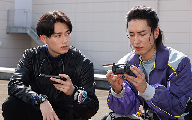 射士郎(葉山侑樹)には、常槍(堀部圭亮)にスパイとして雇われ、大也(井内悠陽)の家に忍び込んだ過去があった。そのミッションは、ブンブン(声:松本梨香)の正体をつかむこと。射士郎は、電子セキュリティを全部解除して地下室までたどり着いたが、あと一歩のところで失敗し、大也から「ホレたよ。その腕、俺が買った!」と手を差し伸べられた。その後、射士郎は常槍に上手くごまかして、大也たちの仲間になったのだった。