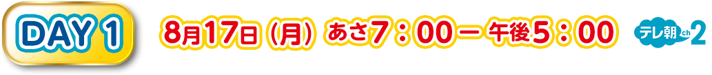 - DAY2に引き続き、1980年から始まったドラえもんの夏スペシャルをまとめて放送。2005年以降はリニューアルされた「ドラえもん」にも注目!