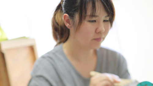 「以前、靴の会社で企画デザインを担当していて、ある時、履物に絵を描くことの出来る『下駄』に魅了されました。下駄作りでは、伝統を生かしながらも現代に合わせて自分の表現を入れていこうと思っています。」