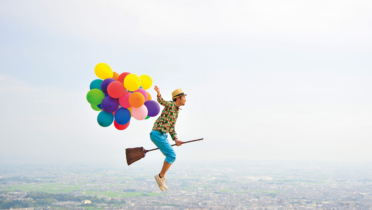 ほうきにまたがり空を飛ぶ男性の写真。この写真、CGなどの加工は一切していない。生み出したのは、アーティスト halno。空を飛ぶ写真を投稿したSNSのフォロワーは、なんと27万人。