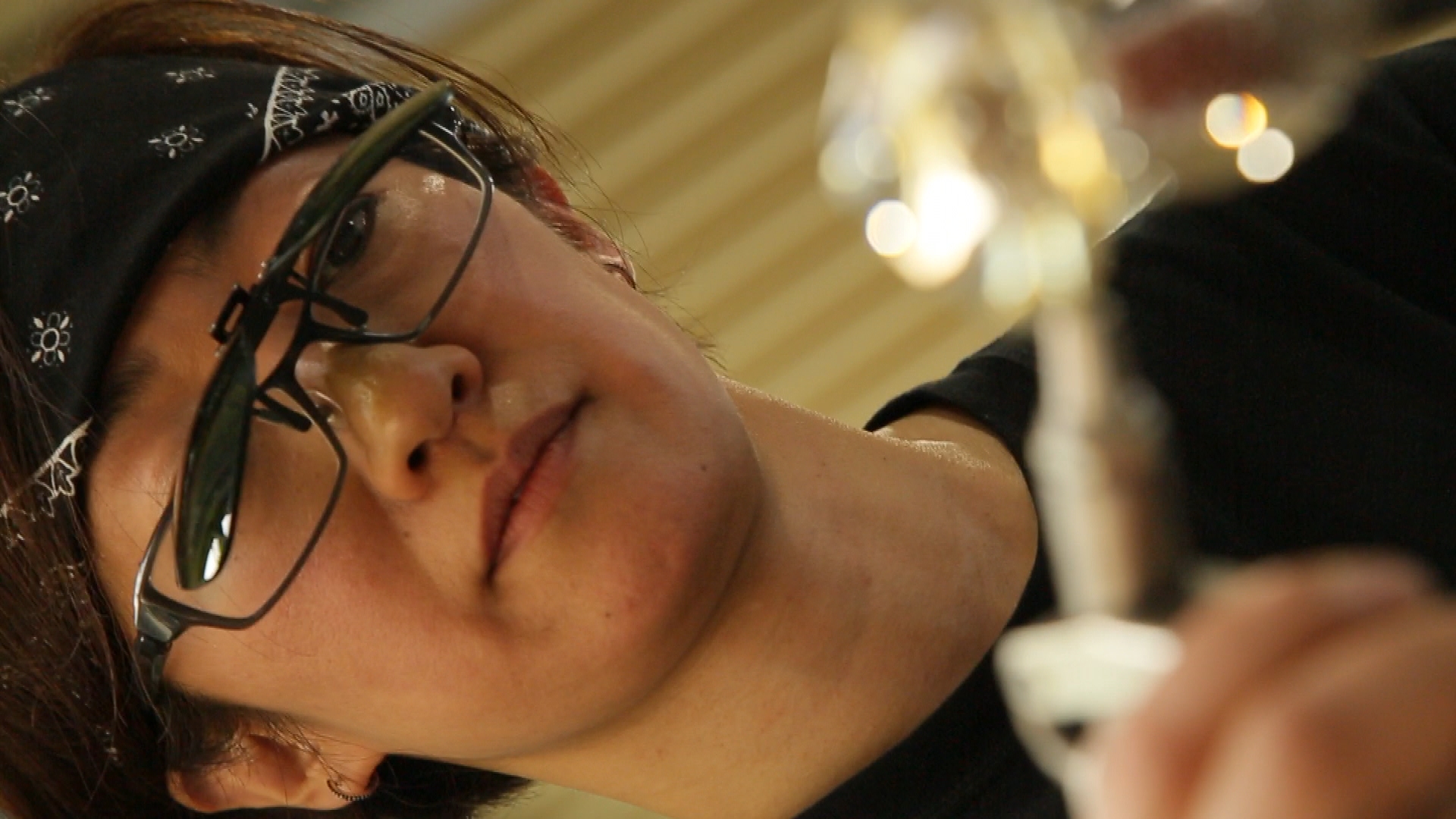 「高温のガラスを扱っているため何かのきっかけで洋服がこげてしまうこともあります。できあがったものは、涼しげで美しいけど現場はすごく過酷ですね。」