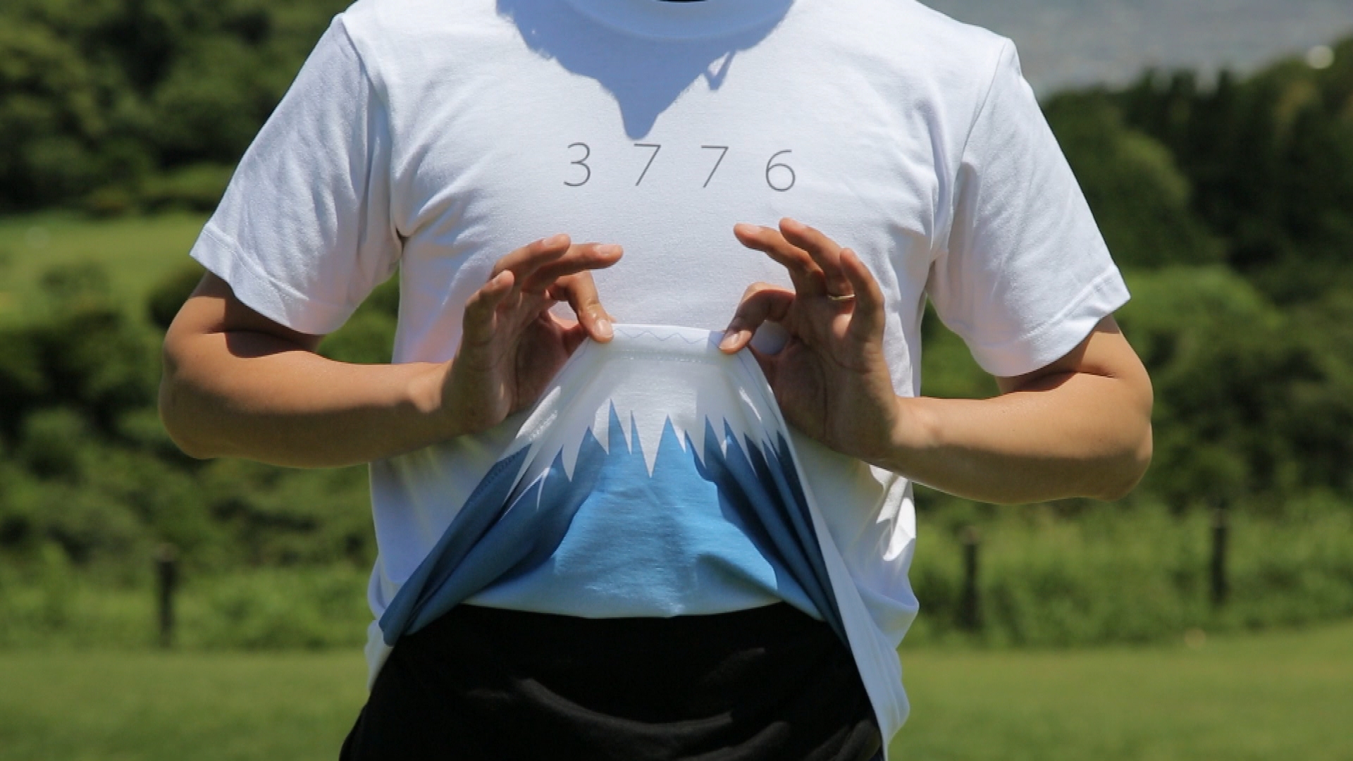 「胸元に“3776”と富士山の標高をプリントしたTシャツ『Fuji T』は、Tシャツの裾をめくると裏面に富士山がプリントされているんです。僕は毎年このTシャツを着て、富士山頂でTシャツの裾をめくって記念写真を撮っています。最高に気持ちいい瞬間ですね。」