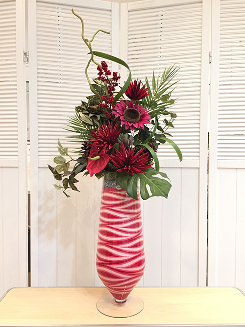 鮮やかな花とも見事に調和する吉原の作品。そこに込められた、デザイン・コードとは…