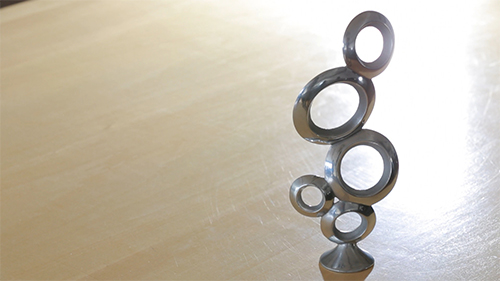 谷村がデザインしたガラスのボールは、底の形が球体になっている。