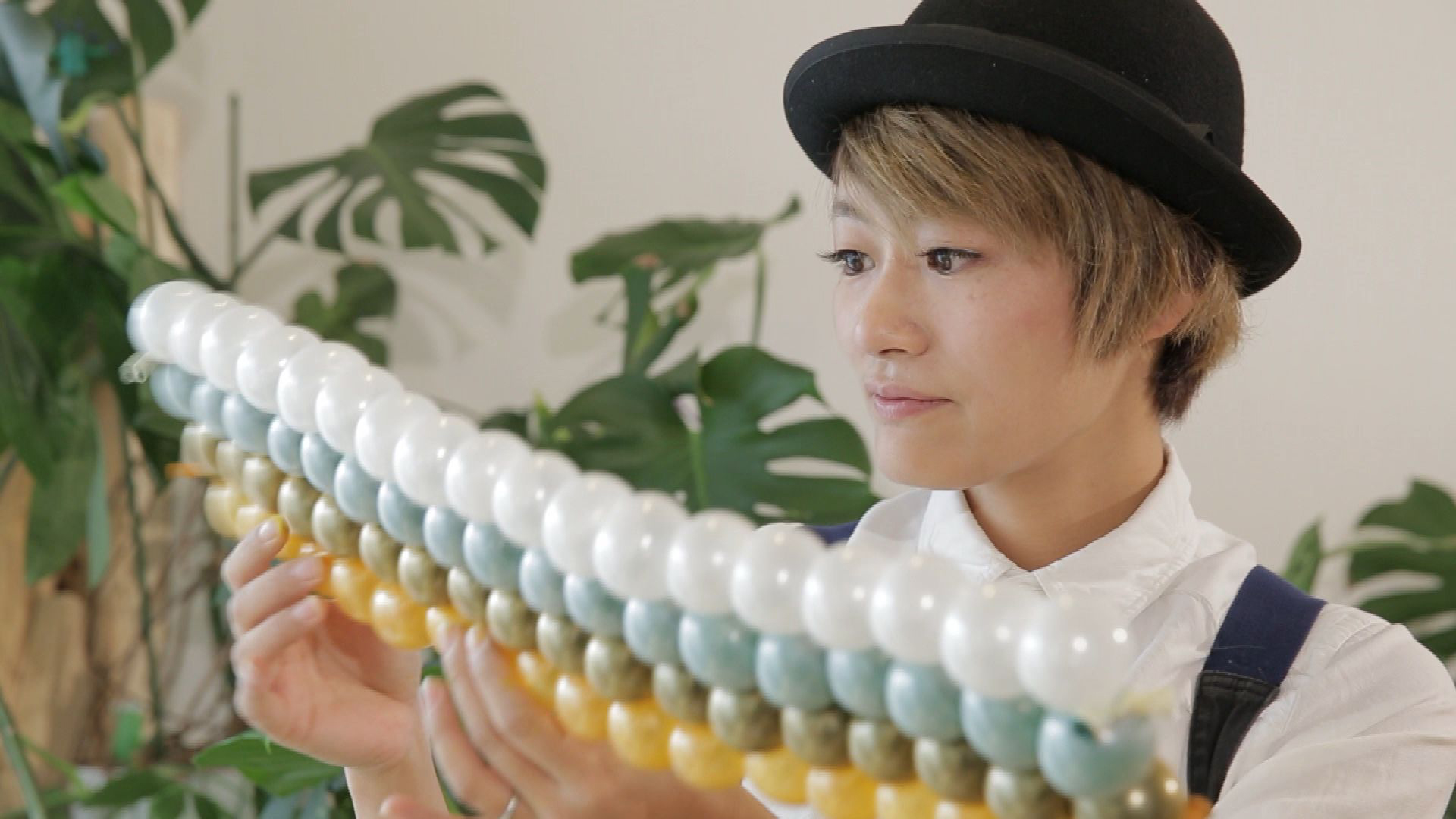写真スタジオでの撮影会。カメラの前でポージングするモデルが着ているのは…風船で作られたドレス。生み出したのは、神宮エミ。 風船で洋服を作る、バルーンデザイナー。