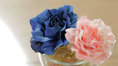 「薄く伸ばした石鹸に手のしわを押し付けることで、本物の花びらのような筋を再現しています。」