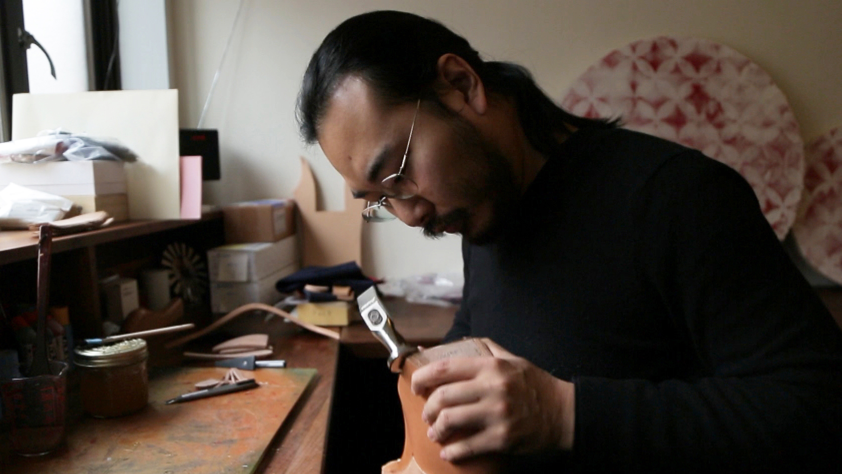 その製作現場を、今回特別に見せてくれた。すべて一人で作るという革製の靴。