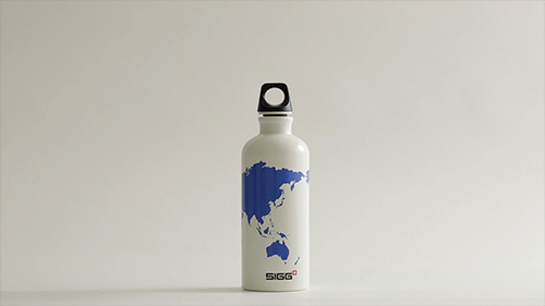 we+が手掛けた白い水筒。冷たい水を入れると…表面に現れたのは、青い世界地図。