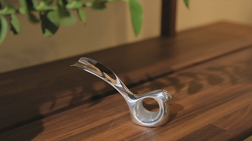 靴べらは、使わない時には小鳥の置物に見えるようにデザインした。
