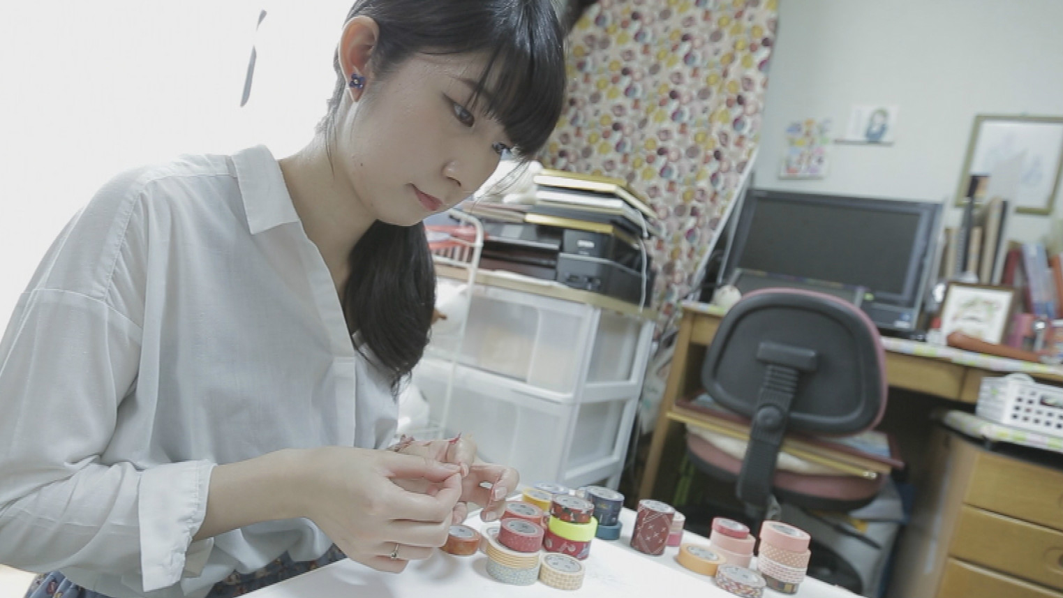 「塗り絵の線画のような下絵に、細かく千切ったマスキングテープを貼って、色を塗っていくようにして作っています。マスキングテープには色々な柄があるので、その柄を生かせるようにしたいなと考えています。」