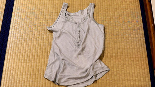 畳に置かれた、着古したタンクトップ。なんと素材は布ではなく陶器。