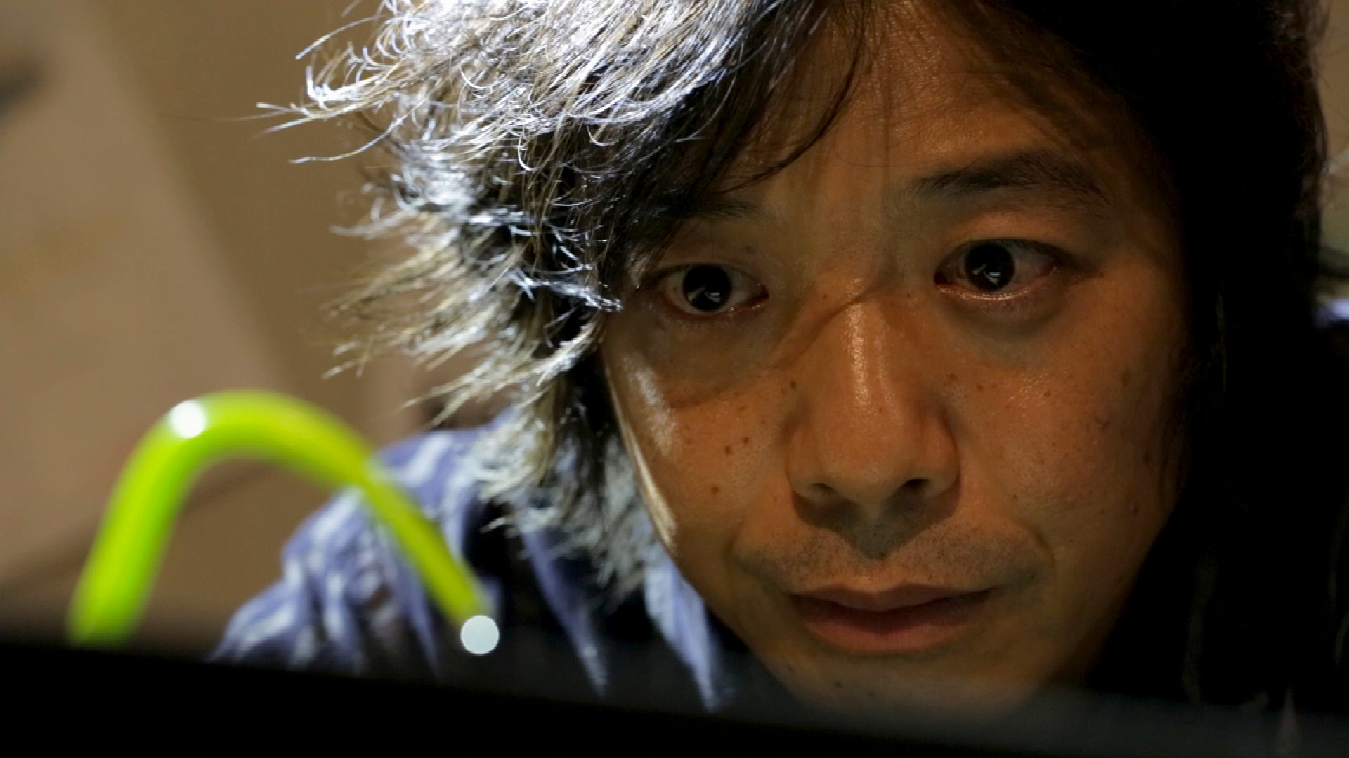 黒い板の上にゆっくりと浮かび上がるアルファベット。文字を構成する粒の正体はなんと、水滴。生み出したのは、鈴木太朗。水や光を操るメディアアーティスト。