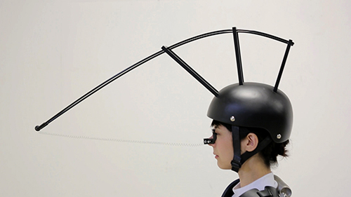 「鼻をつまんでバネで引っ張り、高くするための装置です。鼻にすごくコンプレックスがあり、高くしたいと思ったので作りました。」