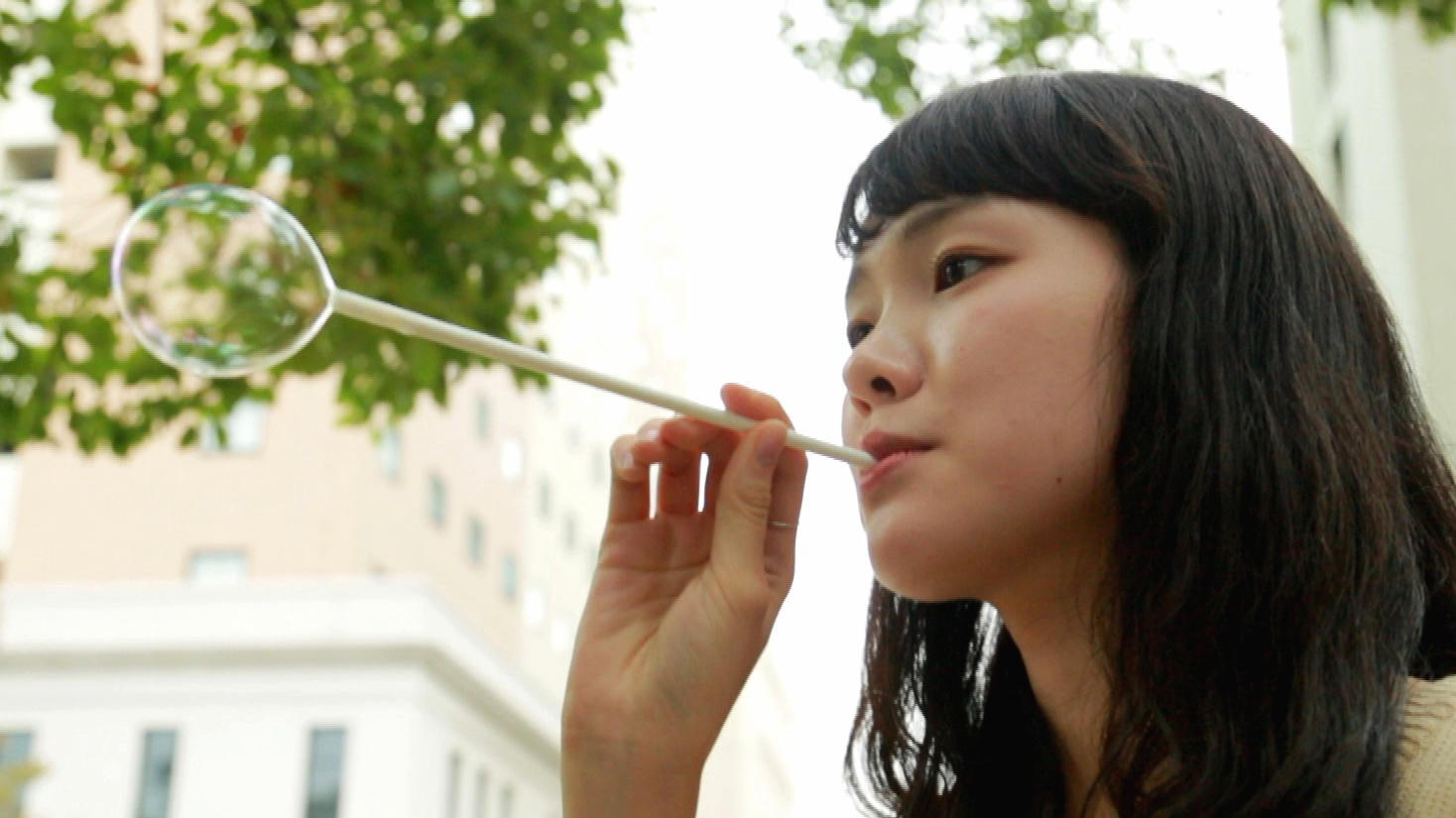 「自分で息を吹き込んだシャボン玉の膜によって明かりが灯るので、命を吹き込んでいるような感覚が魅力かなと思います。」
