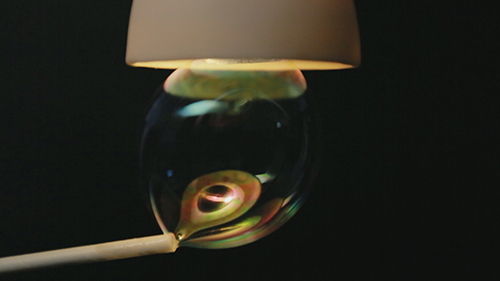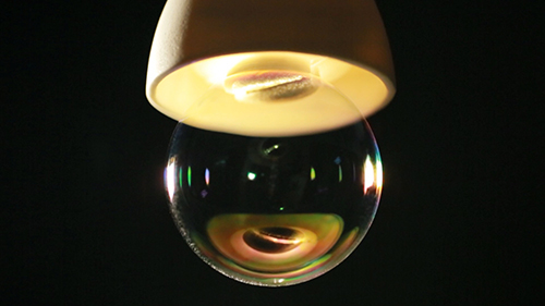 電球のついていない照明器具。そこにシャボン玉をつけると…明かりが灯る。