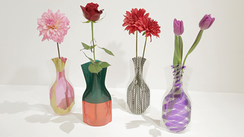 「花瓶というのはスペースを使うので大抵の人は1~2個しか持っていないと思います。だけどこの商品はペチャンコにしてしまうことができるので、たくさん所有できて、気分によって花瓶を変えられる良さがあります。」