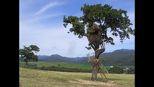 「沖縄で作るのであれば、屋根を流線型にすることで風速30mほどの強風を避けるとか、北海道で作るのであれば鉛筆のように屋根を尖らせて、雪の重さを建物に被らせないようにするなど、デザインとその土地の環境は絶えずセットで出来ています。自然環境への配慮も心掛けていて、使う材料もなるべく地産地消しています。静岡の熱海にあるツリーハウスの場合、家具を全てその土地の枯れていた楠で作っているので、部屋に入ると楠の香りが楽しめます。」