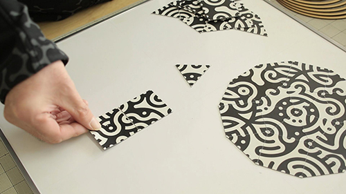 黒と白の曲線で描かれた模様。実は、どう組み合わせても模様が繫がるように作られている。生み出したのは、アーティスト野老朝雄。