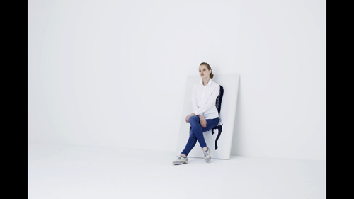 「部屋に飾ってあるイスの絵を、来客があった時に降ろして座ってもらったら面白いんじゃないかなと思って作りました。表面は伸縮性のある布で作っています。座る位置には木のバーを入れているので、そこに座ることが出来るんです。作品『RUG』…床に敷かれたラグマットで折り曲げると固まり、イスのように座ることが出来ます。中には強度のあるアルミの板が入っており、イスとして使える機能を満たしています。」