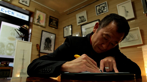 一見、歌舞伎のイラストに見える作品。実は、紙を切り抜いて作られた切り絵。生み出したのは、切り師 長屋 明。ニューヨークの個展でも絶賛された切り絵。長屋は巧みなカッターさばきで0.1ミリの線まで切り出す。