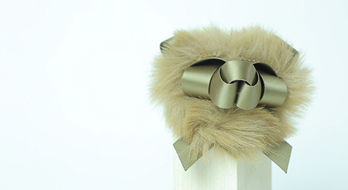 包装用のリボンで作られた、ライオンをモチーフにしたブローチ。生み出したのは、アーティスト・前田 麦。