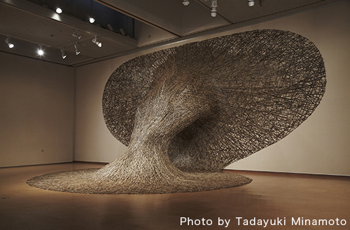 天井と床を無数の竹でつなげた作品『天と地』に込めたのは、「生と死、善と悪といったものは、表裏一体である…。」というメッセージ。海外での更なる活躍を目指す田辺には、いつか叶えたい夢がある。