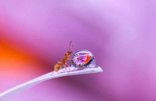 浅井の手に掛かれば、小さなアリにも躍動感と生命力が宿る。これからも水滴写真家の道を歩む浅井。撮影した者だけが味わえる最高の瞬間があるという。