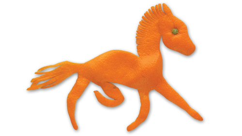 無造作にむいたかに見えるみかんの皮。広げてみると…なんとウマの形になっている。作ったのは、みかんアーティスト・岡田好弘。