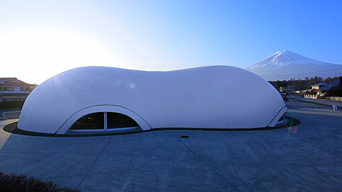 雪化粧をした富士山をバックに建つ、まっ白で奇妙な形の建物。その正体は…山梨名物「ほうとう」のレストラン。設計したのは、建築家・保坂 猛。建物のモチーフは、空にゆらめく雲。