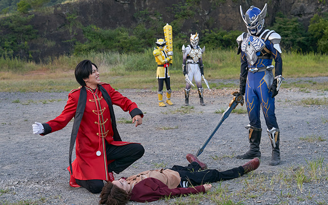 監察官・ソノシに従い、戦いで名乗ったソノイたち脳人三人衆に対し、ドンブラザーズも名乗りで応える。