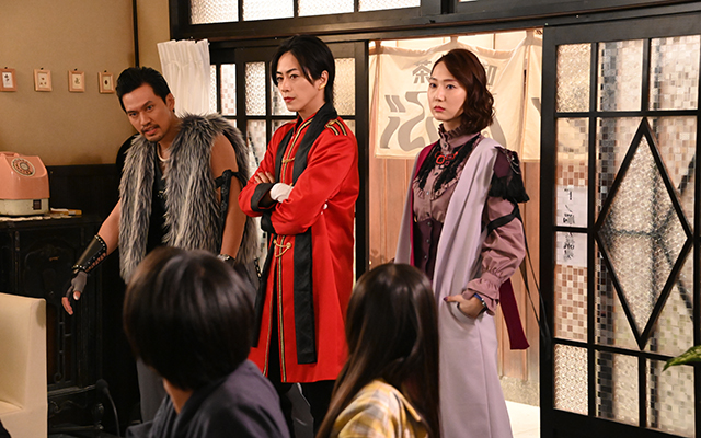 介人に気付いた陣は「まさか喫茶店であなたが働いているとは…」と驚き、慌てて膝をつき敬意を払う。