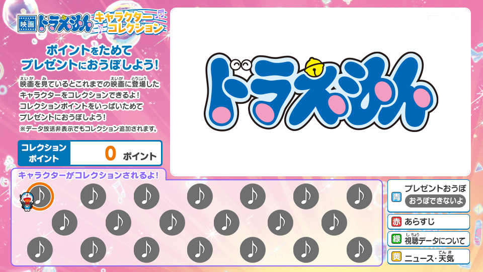 3月1日(土)よる6時56分からテレビ初放送『映画ドラえもん のび太の地球交響楽(ちきゅうシンフォニー)』にて、一夜限りのデータ放送企画を実施♪