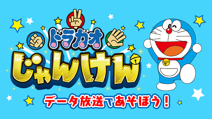 ドラえもんたちが顔の表情(ひょうじょう)でみんなとじゃんけんする楽しいデータ放送のゲーム『ドラガオじゃんけん』の今回のプレゼントの応募(おうぼ)受付は、来週6月30日(金)23:59まで。50ポイント以上たまっていて、まだ応募していない人は急いでね!