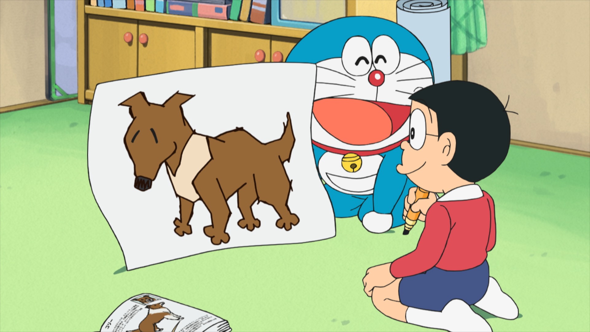 『見たままスコープ』は、どこでお年玉をなくしてしまったのか思い出せないのび太の記憶(きおく)をたどっていくおはなし、『ペットペン』は、ママからペットを飼(か)うことをゆるしてもらえないのび太が、紙に描(か)いた犬のラッシーを飼うことにしたものの、ラッシーは飼い主ののび太に似(に)ていて…!?というおはなし。どちらも原作でも人気のエピソードだよ!