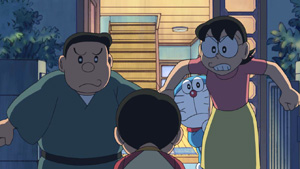 遊んでいて帰りがおそくなってしまい、パパとママにきびしくしかられたのび太は、家出を決意! ネズミのおもちゃでドラえもんを気絶させると、四次元ポケットから、ひみつ道具をいくつか持ち出し、こっそりと家を出ていく。