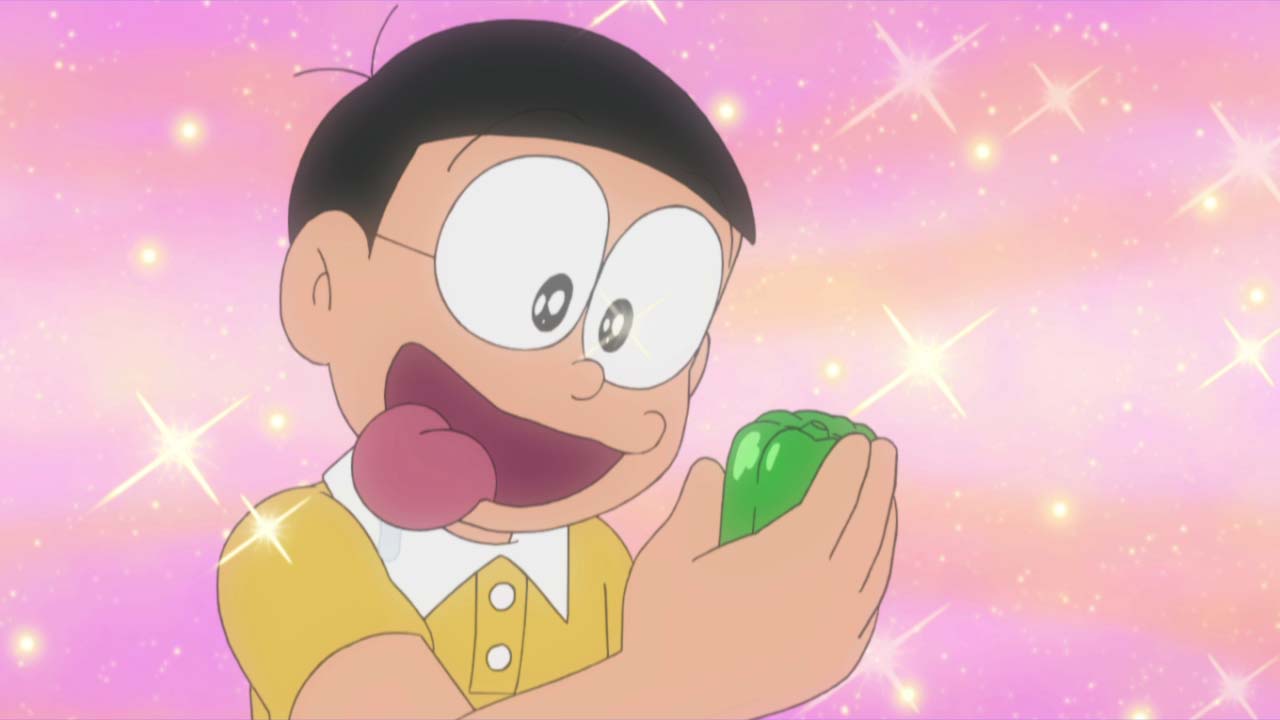 ためしに、「ピーマン」と言いながら、いちばん効果の弱いブルーダイスキンを飲んでみたところ、おいしく食べることができた。のび太はさっそく、しずかに報告しようと彼女の家に向かうが、しずかの前で食べようとした時、ちょうど効果が切れてしまい…。さらに、ジャイアンの歌を好きになるよう、ドラえもんとのび太とスネ夫は、ブルーより強力なイエローダイスキンを飲んでみるが…!?