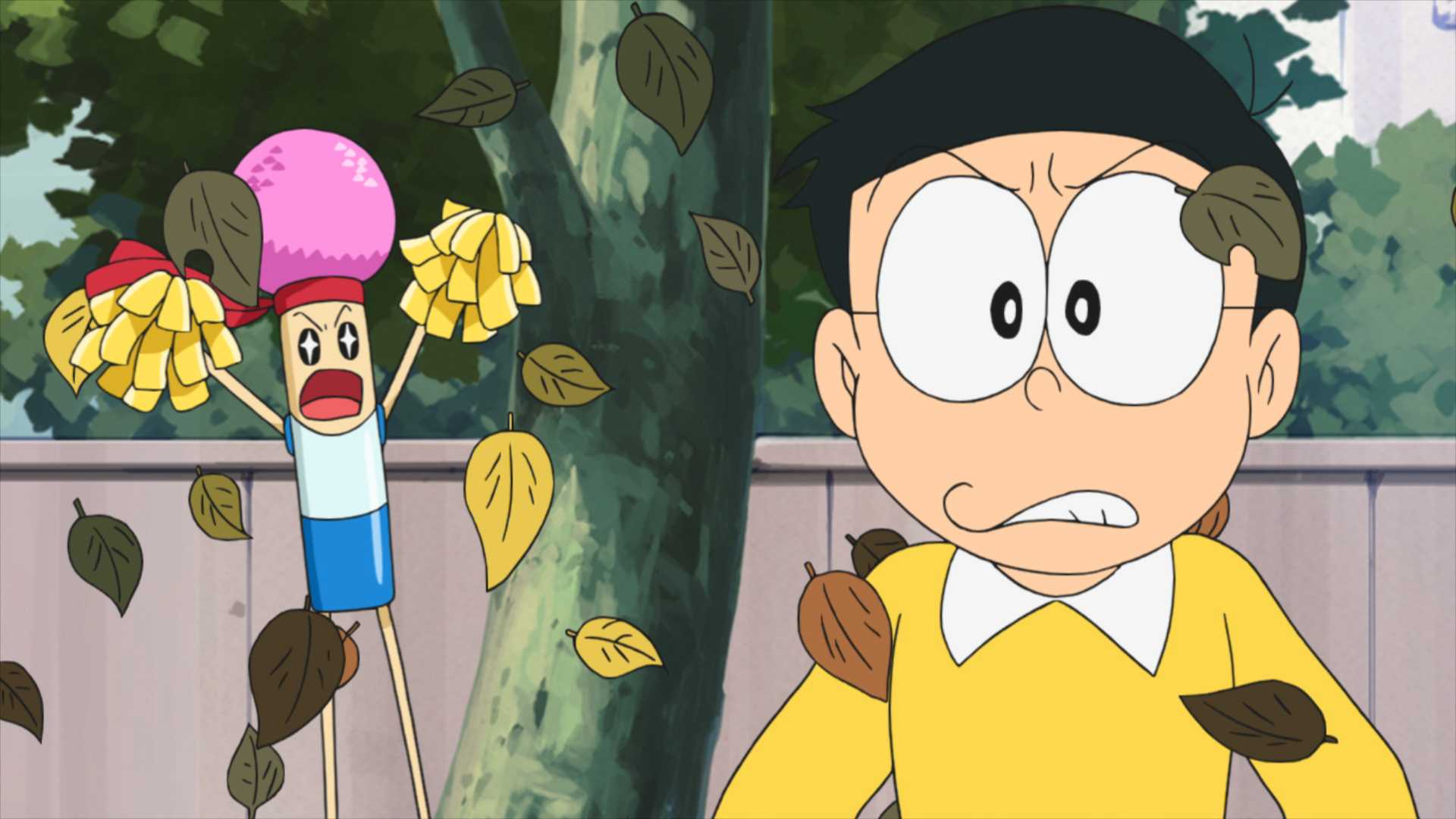 その効果(こうか)に感心したのび太は、応援マイクを手に空地へと向かい、ジャイアンにふたたび消しゴム落としの戦いをいどむが…!?