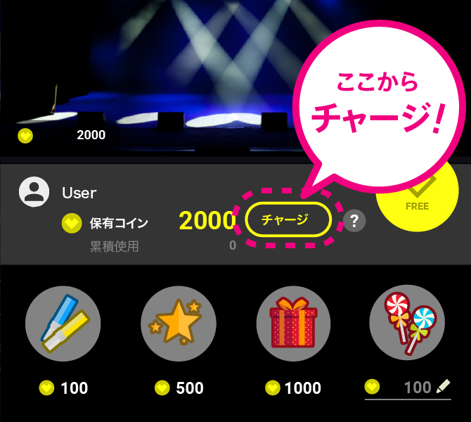 所持しているギフティング用コインは配信画面で確認できるので、足りなくなってきたと思ったらチャージしよう!