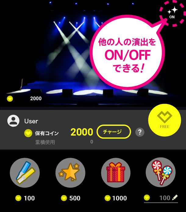 消費コインの少ないアイテムでたくさんギフティングするもよし、消費コインの多いアイテムで印象に残るギフティングをするもよし。自分だけのギフティングで配信を盛り上げよう!