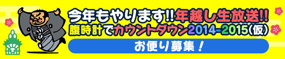 ※応募フォーム受付は2014年12月30日(火)24時00分までとなります。※お送り頂いたお便りの一部(ニックネームも含む)を番組の中で紹介する事があります。