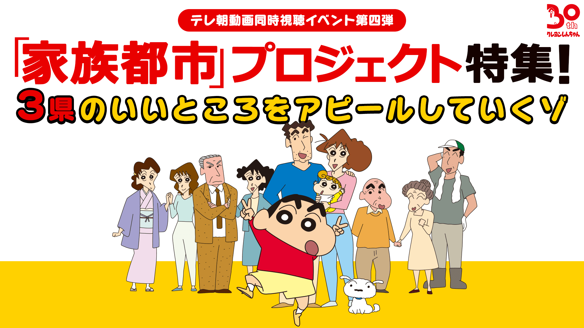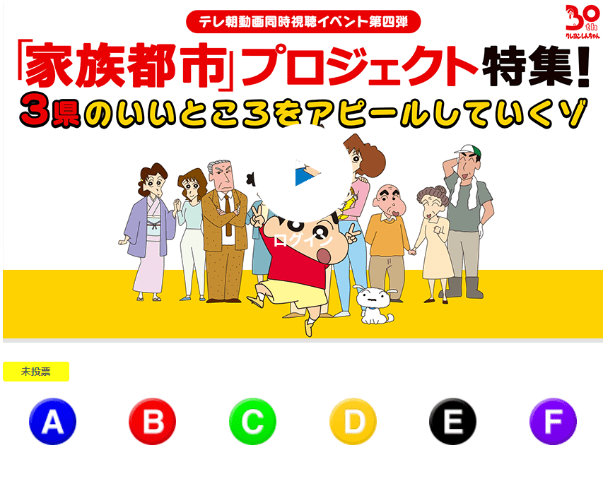クレヨンしんちゃん月額見放題パック加入者で、「テレ朝動画同時視聴イベント第四弾 3県のいいところをアピールしていくゾ」を同時視聴いただける方